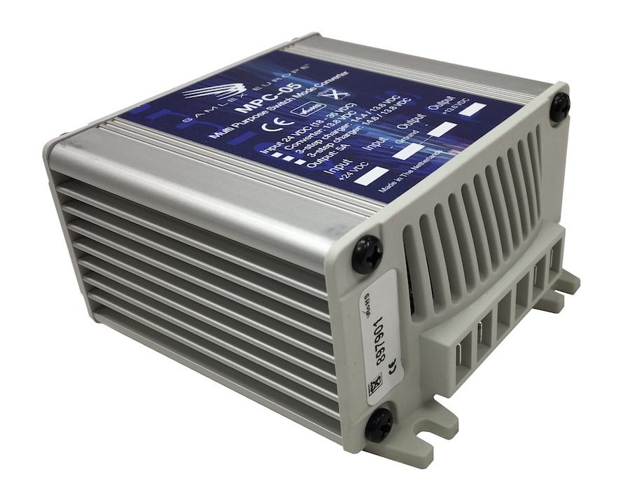 Met deze MPC-05 acculader en converter kunt u 12 volt accu's opladen op plaatsen waar u alleen 24 volt accu's ter beschikking heeft. De MPC-05 heeft verschillende 2-traps laadprogramma's waardoor de 12 volt accu optimaal kan worden geladen en onderhouden: de lader gaat automatisch over naar druppelladen en beschadigt de accu dus niet met overlading. De maximale laadspanning ('boost') kan met een potentiometer worden ingesteld van 14,1 t/m 14,6 volt. Hiermee kunt u vrijwel alle 12 volt accu's laden. De maximale laadstroom is 5 ampere.