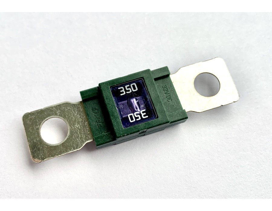 350 ampère hooglast zekering met vertinde gat aansluitingen. Voor 3500-4500 watt omvormers (12 volt) of 7000-9000 watt omvormers (24 volt). Zekeringselement is aan één zijde zichtbaar in behuizing. De hooglast zekering kan worden geplaatst in onze Zekeringhouder voor Mega Zekering.