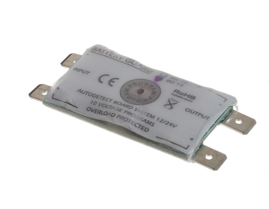 Deze beveiliger detecteert automatisch 12 of 24V accu's. Keuze uit 10 aan/uit drempelspanningen, door u te programmeren.